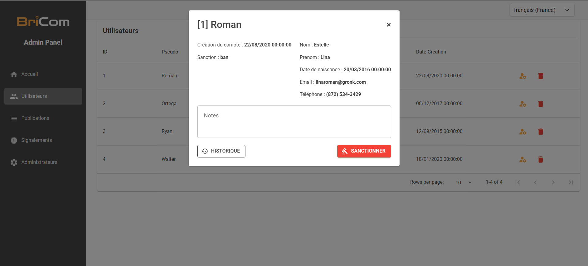 Utilisation dans le cadre d'un site web pour gérer toutes les données