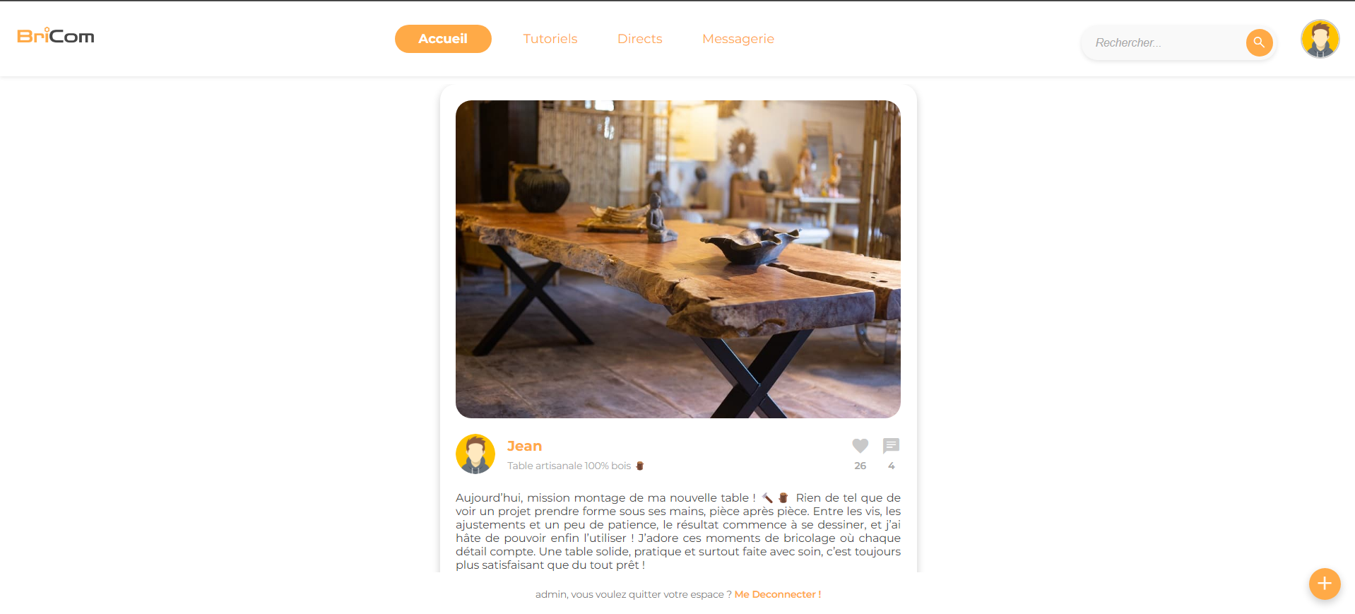 réseau social dédié aux bricoleurs. Le projet a été réalisé en équipe de 3 pendant une année complète (165H).